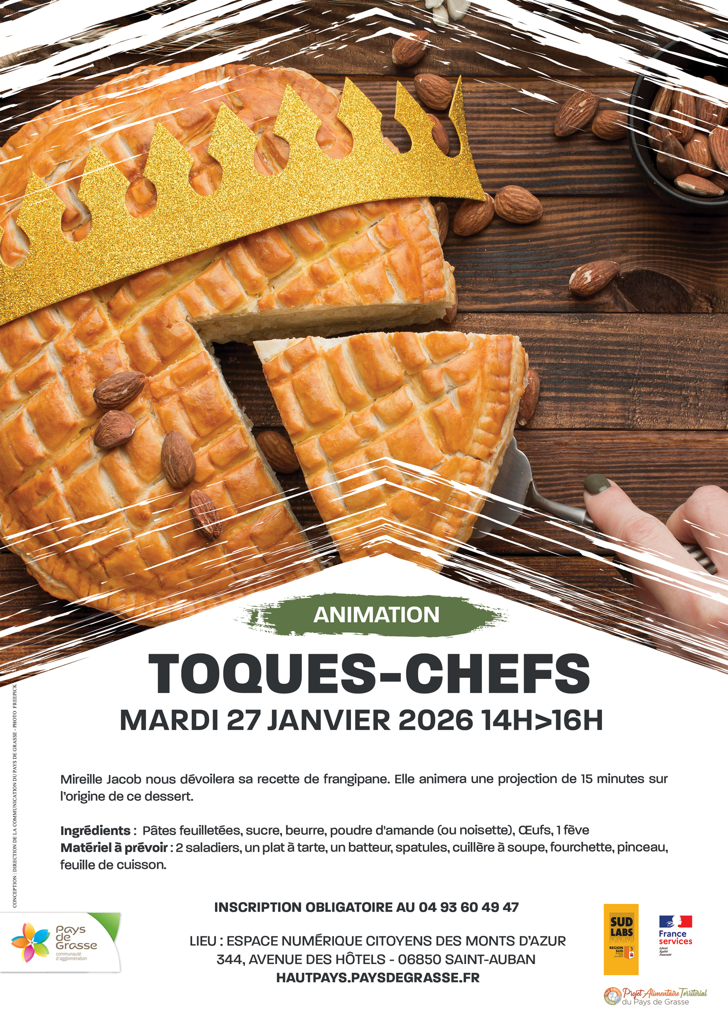 Le mardi 27 janvier 2026 à 14h, Mireille partagera sa délicieuse recette du Frangipane.